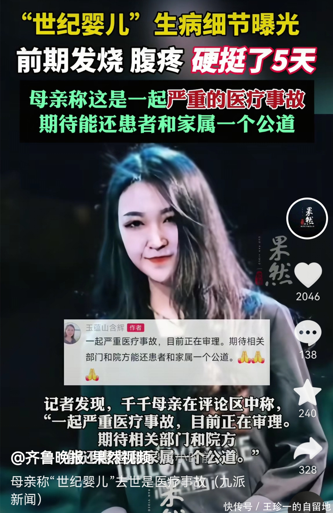 3月24日晚,千千的妈妈在评论区称千千的死是“一起严重医疗事故,目前正在审理。期待相关部门和院方能还患者和家属一个公道。”