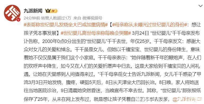 3月24日,“世纪婴儿”千千去世的消息登上了热搜,令人惋惜不已,心痛不已。